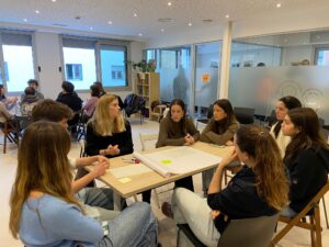 En una segona sessió, es va dur a terme un World Café, un espai col·laboratiu de diàleg i cocreació, on estudiants i equip van reflexionar conjuntament sobre la innovació al Tercer Sector, les oportunitats de la digitalització i la intel·ligència artificial, així com sobre qüestions clau com la interseccionalitat, el poder i els privilegis.